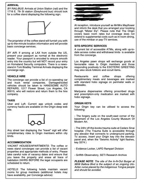 I also can't vouch for this, which is allegedly a page from the Los Angeles section of the "red book". I have no idea if it's real or not, but it gives a useful flavor of what The Origin, if it even exists, might be: